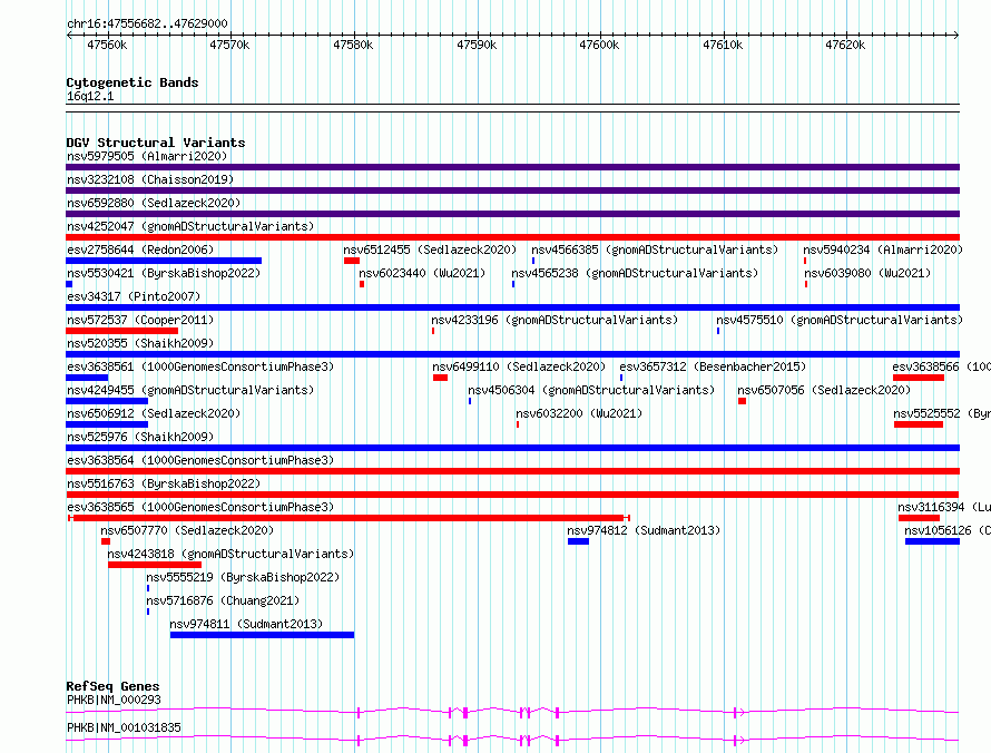 Variant DetailsVariant: nsv5516763| Internal ID | 293211 | | Landmark | | | Location Information | | | Cytoband | 16q12.1 | | Allele length | | Assembly | Allele length | | hg38 | 72319 | | hg19 | 72319 |