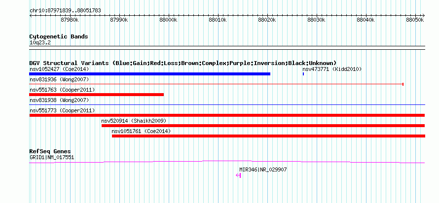Variant DetailsVariant: nsv551773| Internal ID | 16339182 | | Landmark | | | Location Information | | | Cytoband | 10q23.2 | | Allele length | | Assembly | Allele length | | hg38 | 79945 | | hg19 | 79945 | | hg18 | 79945 |
