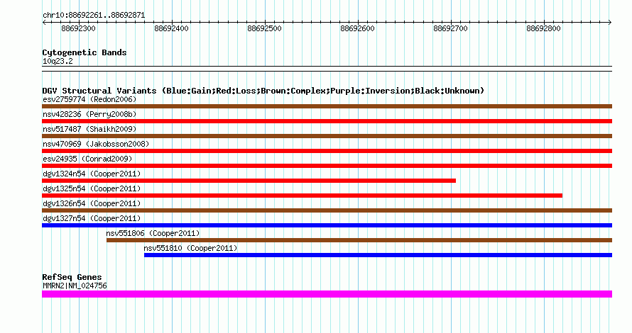 Variant DetailsVariant: nsv551802| Internal ID | 16339211 | | Landmark | | | Location Information | | | Cytoband | 10q23.2 | | Allele length | | Assembly | Allele length | | hg38 | 611 | | hg19 | 611 | | hg18 | 611 |