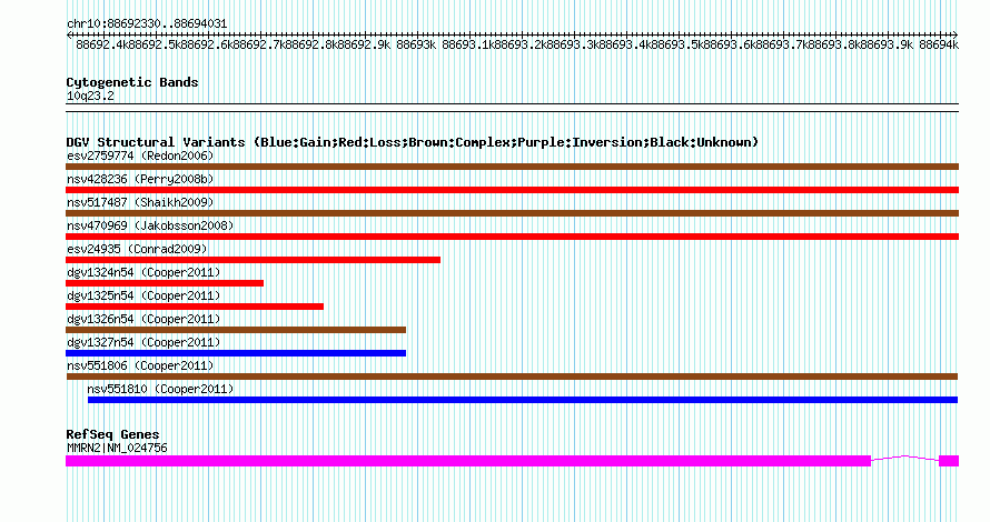 Variant DetailsVariant: nsv551806| Internal ID | 16339215 | | Landmark | | | Location Information | | | Cytoband | 10q23.2 | | Allele length | | Assembly | Allele length | | hg38 | 1702 | | hg19 | 1702 | | hg18 | 1702 |
