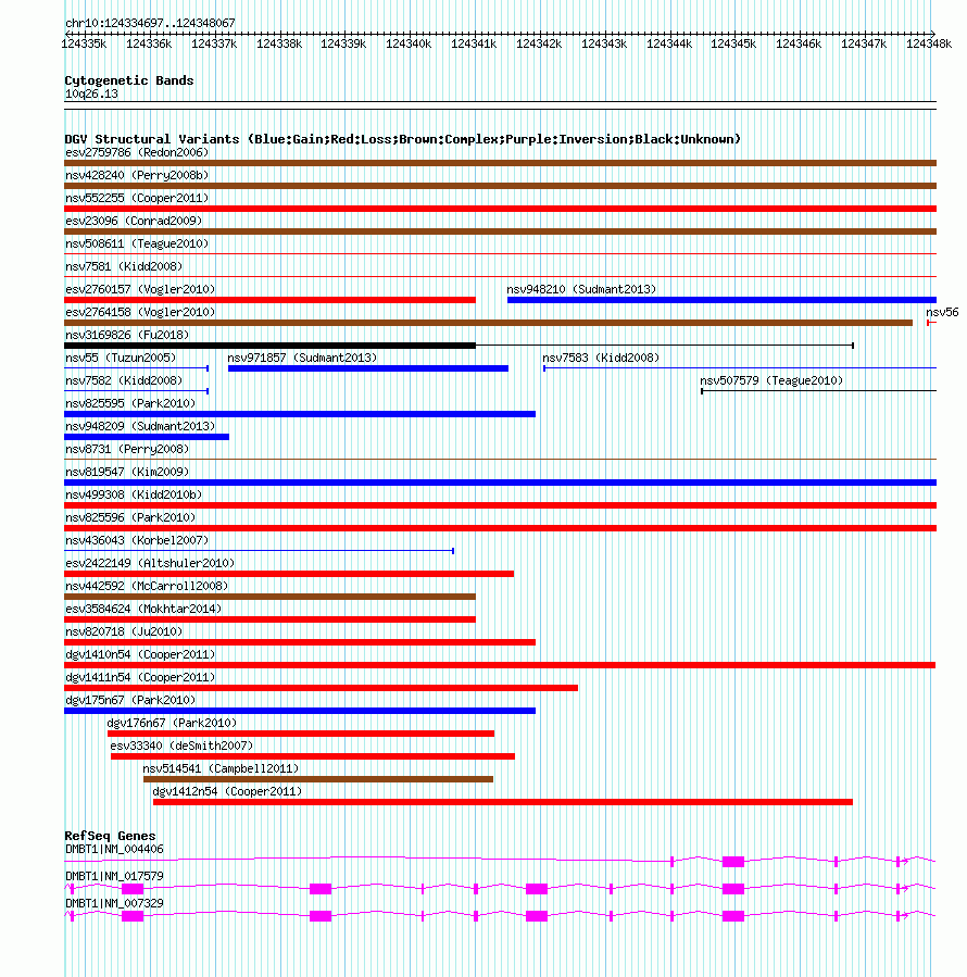 Variant DetailsVariant: nsv552266| Internal ID | 16339675 | | Landmark | | | Location Information | | | Cytoband | 10q26.13 | | Allele length | | Assembly | Allele length | | hg38 | 13371 | | hg19 | 13371 | | hg18 | 13371 |