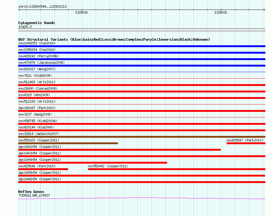 Variant DetailsVariant: nsv552439| Internal ID | 16339848 | | Landmark | | | Location Information | | | Cytoband | 10q26.3 | | Allele length | | Assembly | Allele length | | hg38 | 1770 | | hg19 | 1770 | | hg18 | 1770 |