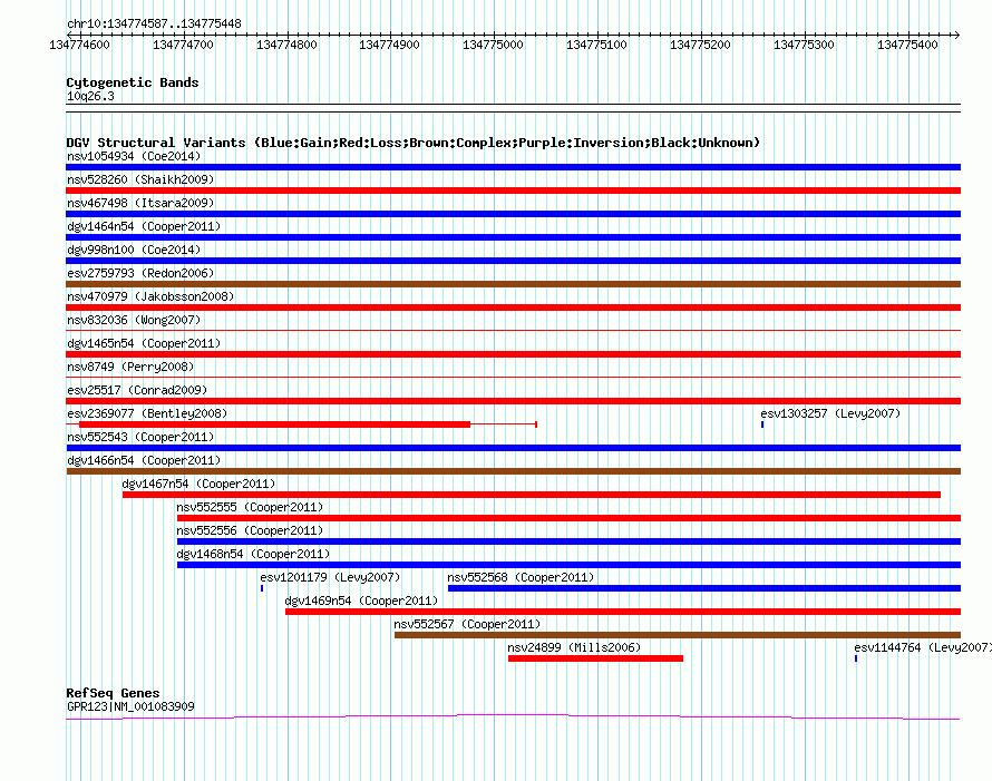 Variant DetailsVariant: nsv552542| Internal ID | 16339951 | | Landmark | | | Location Information | | | Cytoband | 10q26.3 | | Allele length | | Assembly | Allele length | | hg38 | 862 | | hg19 | 862 | | hg18 | 862 |