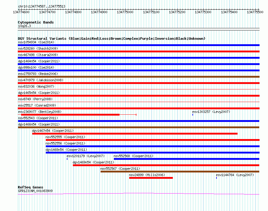 Variant DetailsVariant: nsv552543| Internal ID | 16339952 | | Landmark | | | Location Information | | | Cytoband | 10q26.3 | | Allele length | | Assembly | Allele length | | hg38 | 927 | | hg19 | 927 | | hg18 | 927 |
