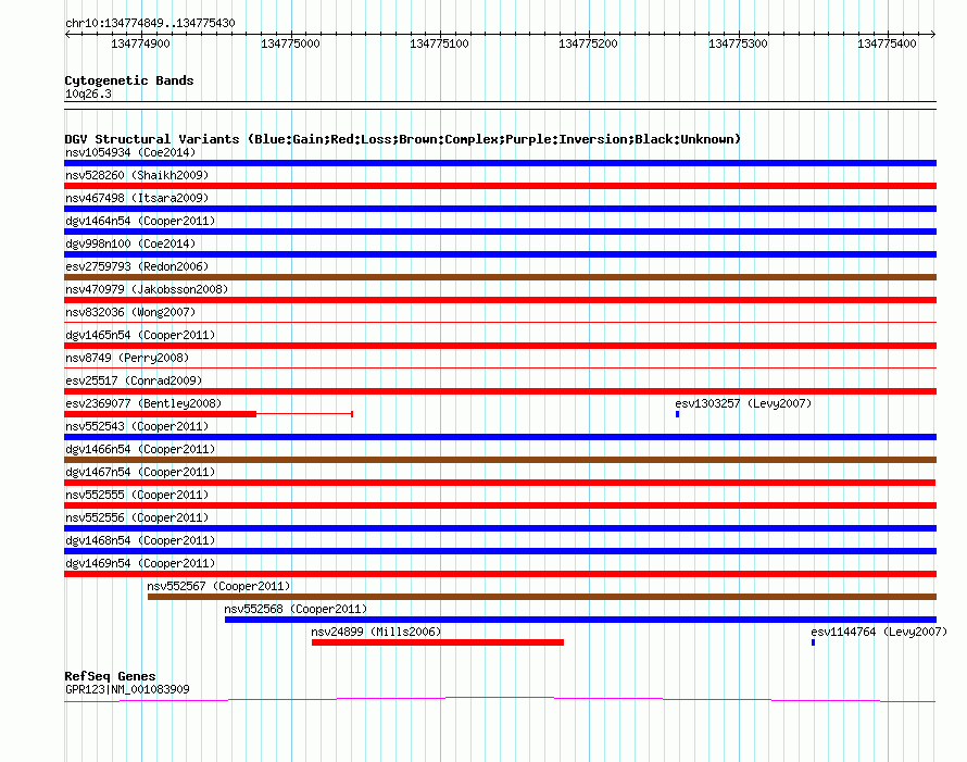 Variant DetailsVariant: nsv552565| Internal ID | 16339974 | | Landmark | | | Location Information | | | Cytoband | 10q26.3 | | Allele length | | Assembly | Allele length | | hg38 | 582 | | hg19 | 582 | | hg18 | 582 |