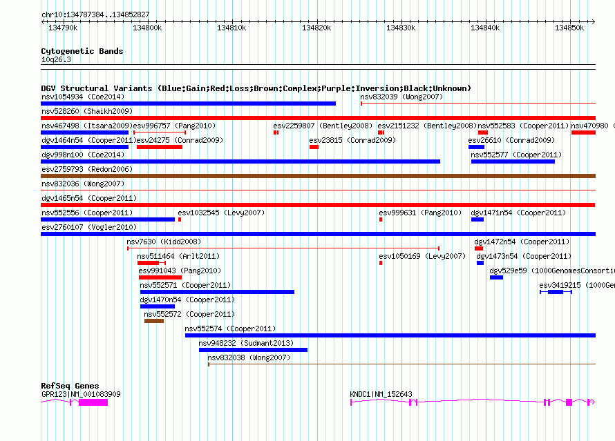Variant DetailsVariant: nsv552569| Internal ID | 16339978 | | Landmark | | | Location Information | | | Cytoband | 10q26.3 | | Allele length | | Assembly | Allele length | | hg38 | 65444 | | hg19 | 65444 | | hg18 | 65444 |