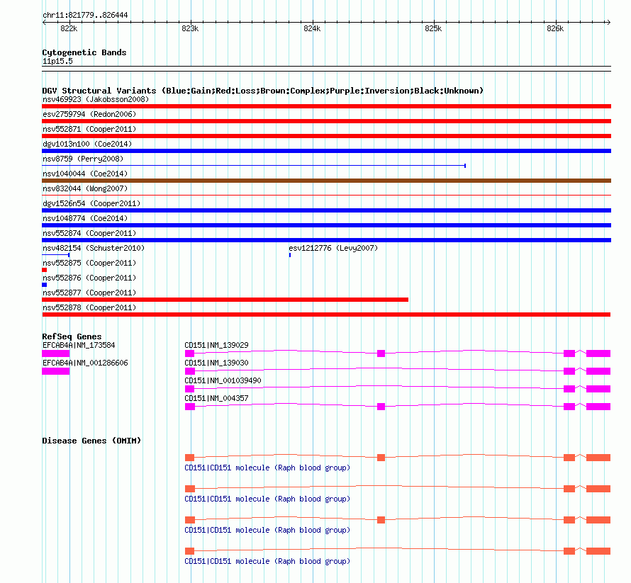 Variant DetailsVariant: nsv552878| Internal ID | 16340287 | | Landmark | | | Location Information | | | Cytoband | 11p15.5 | | Allele length | | Assembly | Allele length | | hg38 | 4666 | | hg19 | 4666 | | hg18 | 4666 |