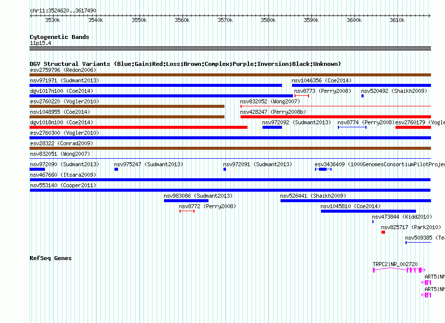 Variant DetailsVariant: nsv553140| Internal ID | 16340549 | | Landmark | | | Location Information | | | Cytoband | 11p15.4 | | Allele length | | Assembly | Allele length | | hg38 | 92871 | | hg19 | 92871 | | hg18 | 92871 |