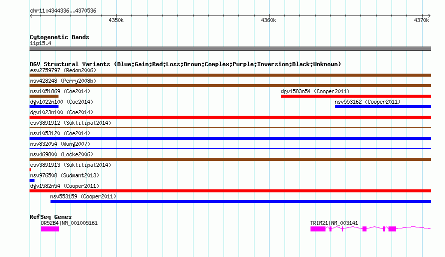 Variant DetailsVariant: nsv553157| Internal ID | 16340566 | | Landmark | | | Location Information | | | Cytoband | 11p15.4 | | Allele length | | Assembly | Allele length | | hg38 | 26201 | | hg19 | 26201 | | hg18 | 26201 |
