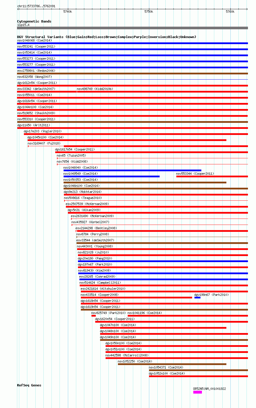 Variant DetailsVariant: nsv553309| Internal ID | 16340718 | | Landmark | | | Location Information | | | Cytoband | 11p15.4 | | Allele length | | Assembly | Allele length | | hg38 | 28306 | | hg19 | 28306 | | hg18 | 28306 |
