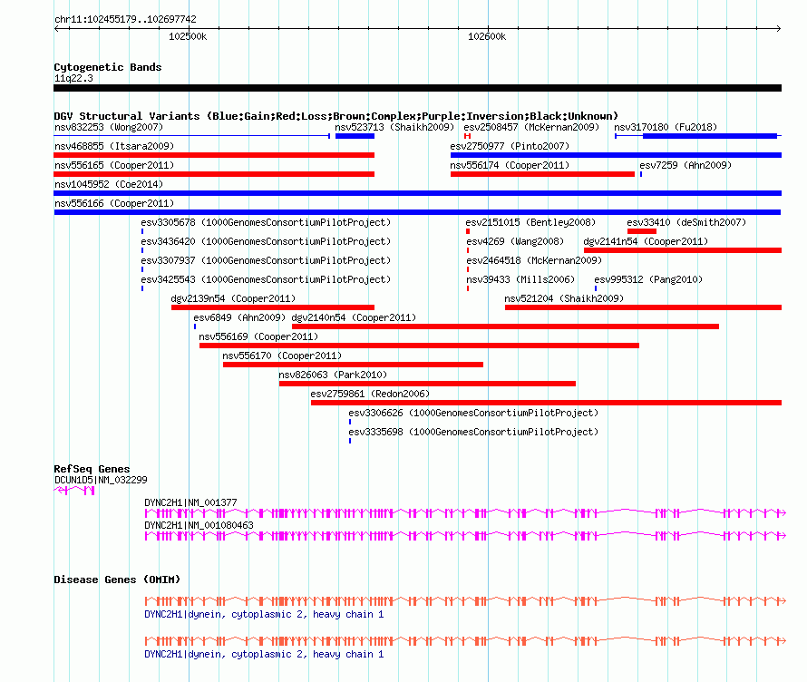 Variant DetailsVariant: nsv556166| Internal ID | 16343575 | | Landmark | | | Location Information | | | Cytoband | 11q22.3 | | Allele length | | Assembly | Allele length | | hg38 | 242564 | | hg19 | 242564 | | hg18 | 242564 |