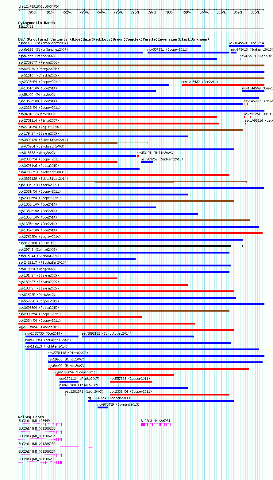 Variant DetailsVariant: nsv557297| Internal ID | 16344706 | | Landmark | | | Location Information | | | Cytoband | 12p13.31 | | Allele length | | Assembly | Allele length | | hg38 | 143148 | | hg19 | 143148 | | hg18 | 143148 |