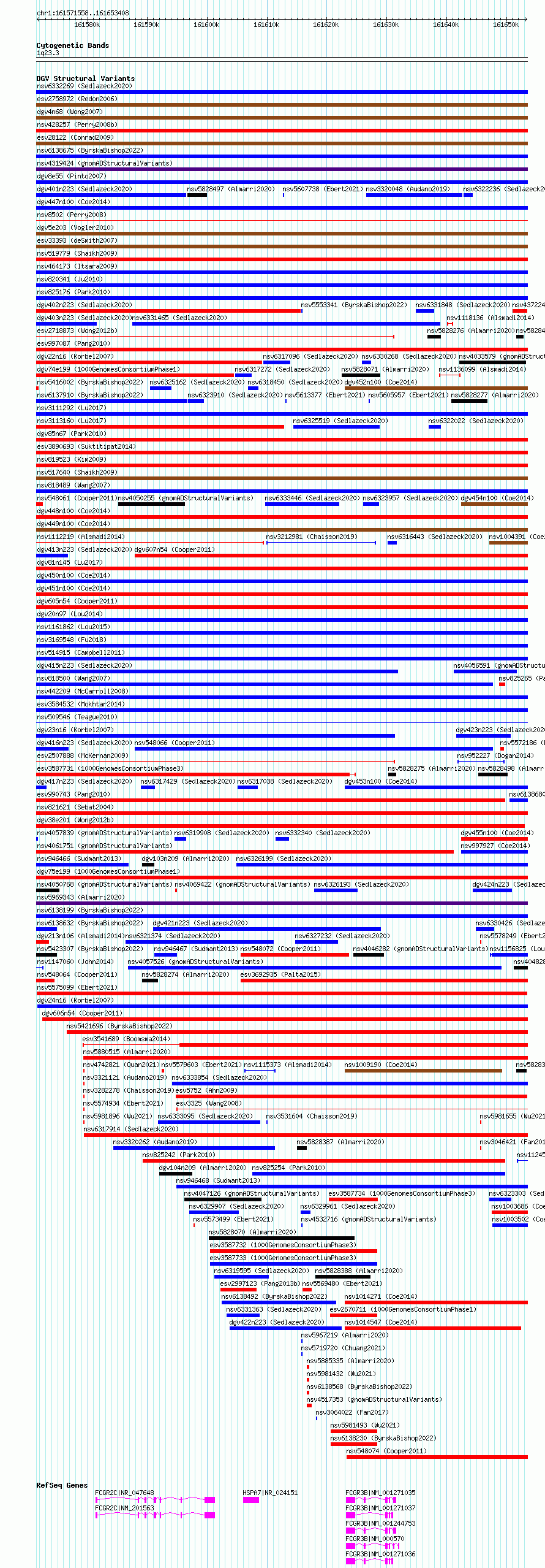 Variant DetailsVariant: nsv5575099| Internal ID | 21523524 | | Landmark | | | Location Information | | | Cytoband | 1q23.3 | | Allele length | | Assembly | Allele length | | hg38 | 81851 | | hg19 | 81851 |