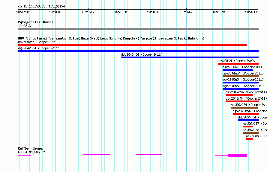 Variant DetailsVariant: nsv560056| Internal ID | 16347465 | | Landmark | | | Location Information | | | Cytoband | 12q23.3 | | Allele length | | Assembly | Allele length | | hg38 | 7343 | | hg19 | 7343 | | hg18 | 7343 |