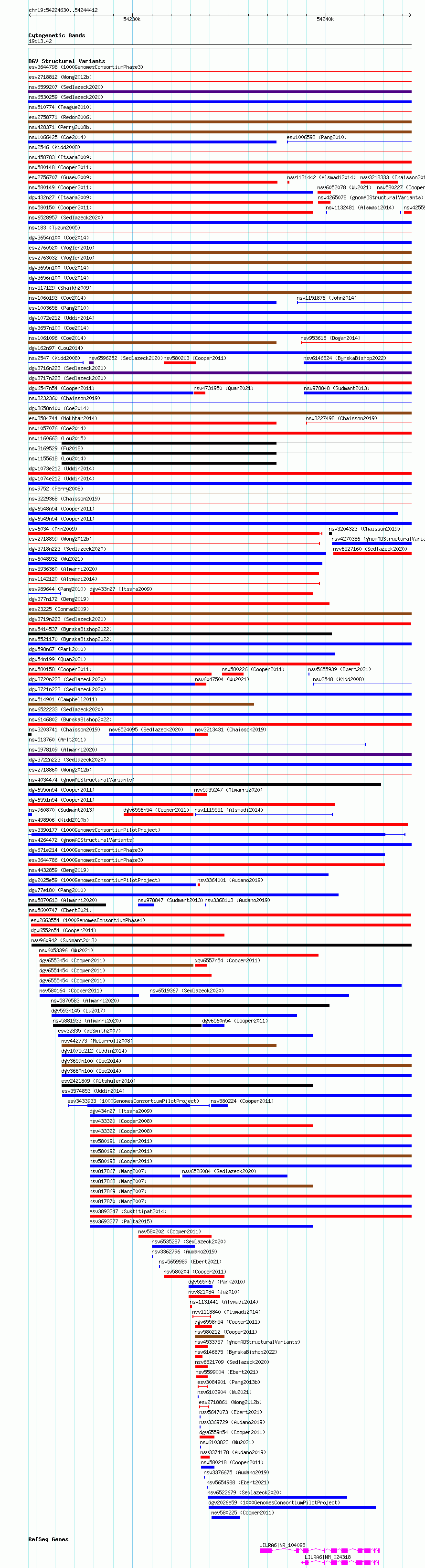 Variant DetailsVariant: nsv5600747| Internal ID | 21549388 | | Landmark | | | Location Information | | | Cytoband | 19q13.42 | | Allele length | | Assembly | Allele length | | hg38 | 19783 | | hg19 | 19750 |