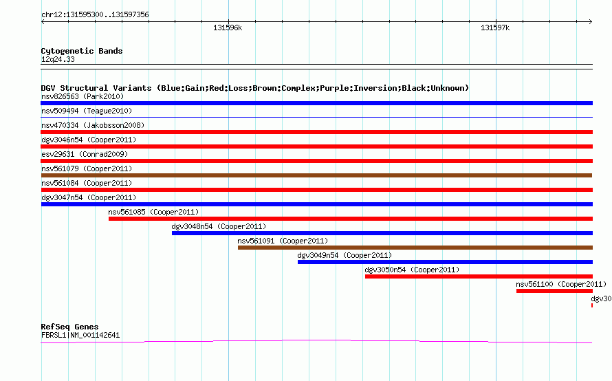 Variant DetailsVariant: nsv561079| Internal ID | 16348488 | | Landmark | | | Location Information | | | Cytoband | 12q24.33 | | Allele length | | Assembly | Allele length | | hg38 | 2057 | | hg19 | 2057 | | hg18 | 2057 |