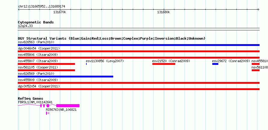 Variant DetailsVariant: nsv561107| Internal ID | 16348516 | | Landmark | | | Location Information | | | Cytoband | 12q24.33 | | Allele length | | Assembly | Allele length | | hg38 | 23223 | | hg19 | 23223 | | hg18 | 23223 |