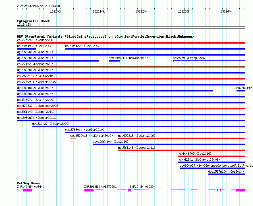 Variant DetailsVariant: nsv561145| Internal ID | 16348554 | | Landmark | | | Location Information | | | Cytoband | 12q24.33 | | Allele length | | Assembly | Allele length | | hg38 | 53415 | | hg19 | 53415 | | hg18 | 53415 |