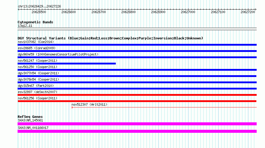 Variant DetailsVariant: nsv561256| Internal ID | 16348665 | | Landmark | | | Location Information | | | Cytoband | 13q12.11 | | Allele length | | Assembly | Allele length | | hg38 | 798 | | hg19 | 798 | | hg18 | 798 |
