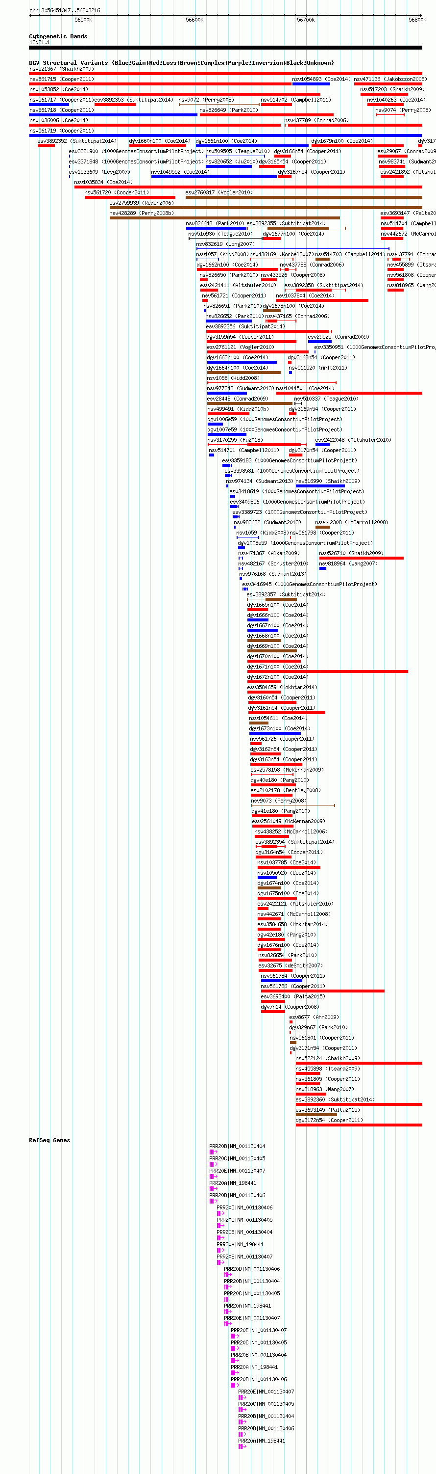 Variant DetailsVariant: nsv561719| Internal ID | 16349128 | | Landmark | | | Location Information | | | Cytoband | 13q21.1 | | Allele length | | Assembly | Allele length | | hg38 | 351870 | | hg19 | 351870 | | hg18 | 351870 |