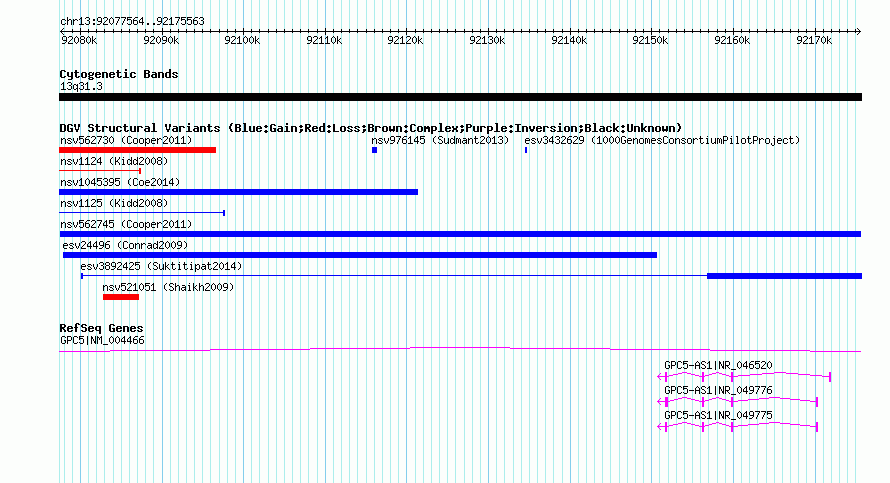 Variant DetailsVariant: nsv562745| Internal ID | 16350154 | | Landmark | | | Location Information | | | Cytoband | 13q31.3 | | Allele length | | Assembly | Allele length | | hg38 | 98000 | | hg19 | 98000 | | hg18 | 98000 |