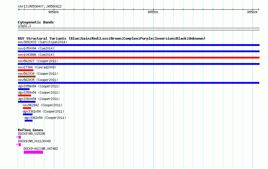 Variant DetailsVariant: nsv562935| Internal ID | 16350344 | | Landmark | | | Location Information | | | Cytoband | 13q32.3 | | Allele length | | Assembly | Allele length | | hg38 | 24216 | | hg19 | 24216 | | hg18 | 24216 |