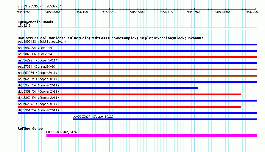 Variant DetailsVariant: nsv562943| Internal ID | 16350352 | | Landmark | | | Location Information | | | Cytoband | 13q32.3 | | Allele length | | Assembly | Allele length | | hg38 | 841 | | hg19 | 841 | | hg18 | 841 |