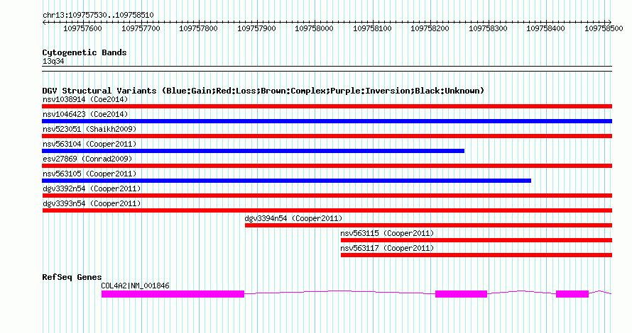 | | Variant Type | CNV loss | | Copy Number | | | Allele State | | | Allele Origin | | | Probe Count | | | Validation Flag | | | Merged Status | M | | Merged Variants | dgv3392n54 | | Supporting Variants | nssv819738, nssv819739 | | Samples | | | Known Genes | COL4A2 | | Method | SNP array | | Analysis | Illumina SNP array copy number analysis | | Platform | Not reported | | Comments | | | Reference | Cooper_et_al_2011 | | Pubmed ID | 21841781 | | Accession Number(s) | nsv563107