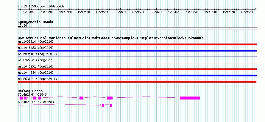 | | Variant Type | CNV loss | | Copy Number | | | Allele State | | | Allele Origin | | | Probe Count | | | Validation Flag | | | Merged Status | M | | Merged Variants | | | Supporting Variants | nssv819756 | | Samples | | | Known Genes | COL4A2, COL4A2-AS1 | | Method | SNP array | | Analysis | Illumina SNP array copy number analysis | | Platform | Not reported | | Comments | | | Reference | Cooper_et_al_2011 | | Pubmed ID | 21841781 | | Accession Number(s) | nsv563121