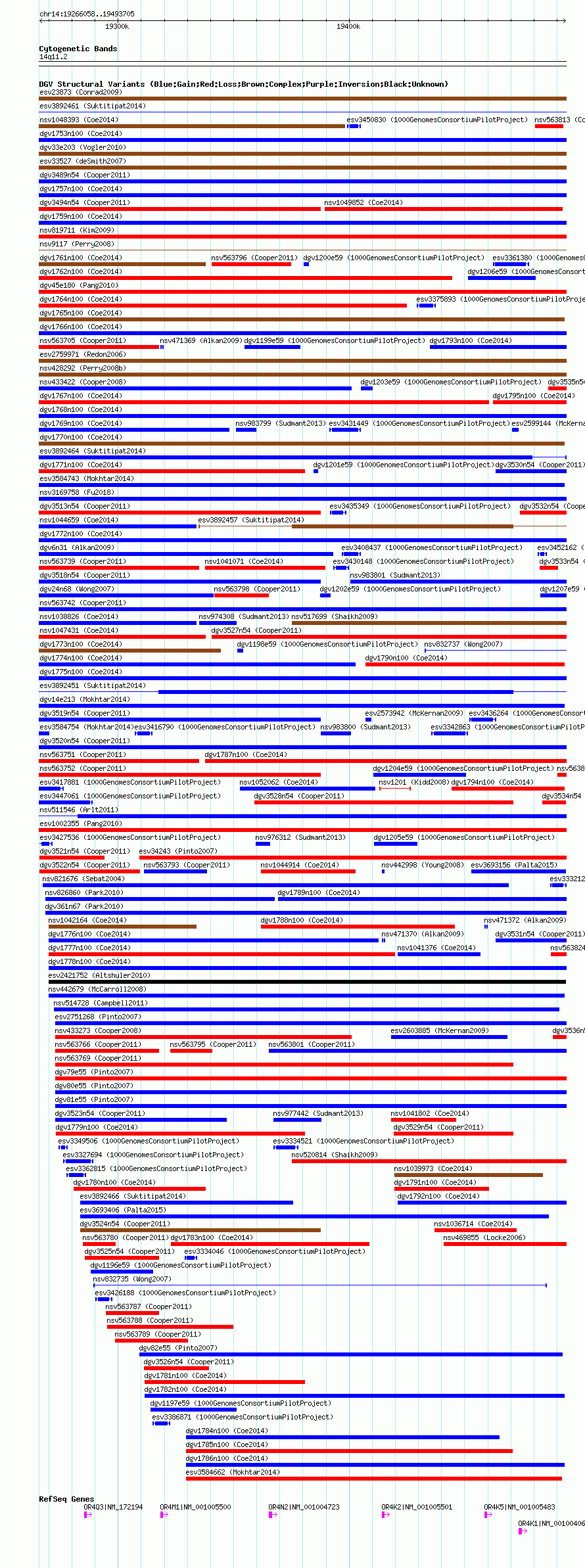 Variant DetailsVariant: nsv563759| Internal ID | 16351168 | | Landmark | | | Location Information | | | Cytoband | 14q11.2 | | Allele length | | Assembly | Allele length | | hg38 | 227648 | | hg19 | 227648 | | hg18 | 227648 |