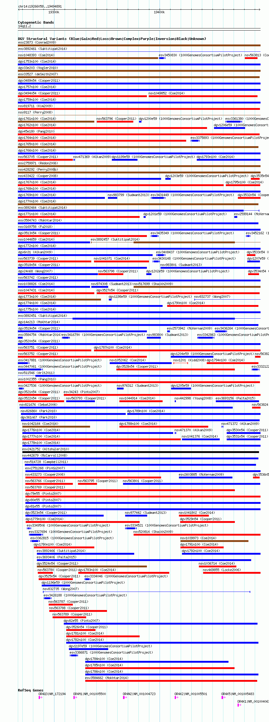 Variant DetailsVariant: nsv563762| Internal ID | 16351171 | | Landmark | | | Location Information | | | Cytoband | 14q11.2 | | Allele length | | Assembly | Allele length | | hg38 | 228834 | | hg19 | 228834 | | hg18 | 228834 |