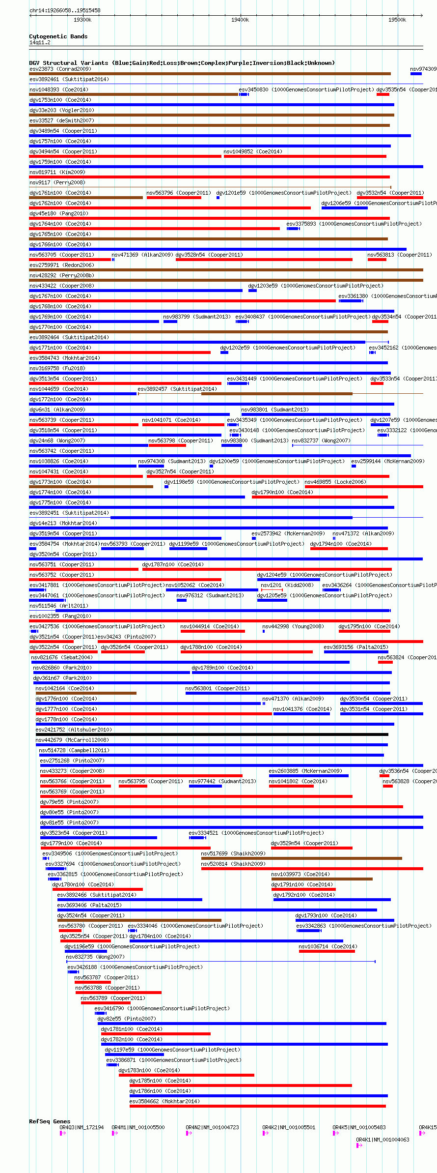 Variant DetailsVariant: nsv563764| Internal ID | 16351173 | | Landmark | | | Location Information | | | Cytoband | 14q11.2 | | Allele length | | Assembly | Allele length | | hg38 | 249401 | | hg19 | 249401 | | hg18 | 249401 |
