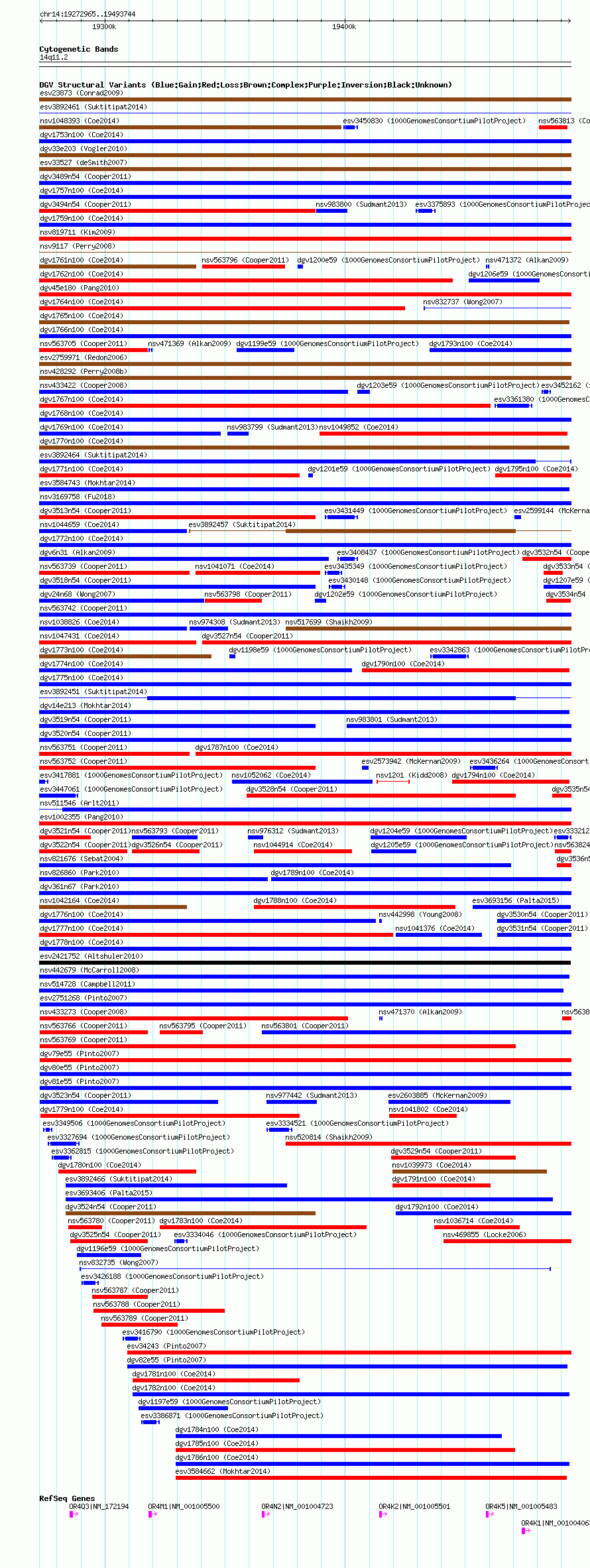 Variant DetailsVariant: nsv563771| Internal ID | 16351180 | | Landmark | | | Location Information | | | Cytoband | 14q11.2 | | Allele length | | Assembly | Allele length | | hg38 | 220780 | | hg19 | 220780 | | hg18 | 220780 |