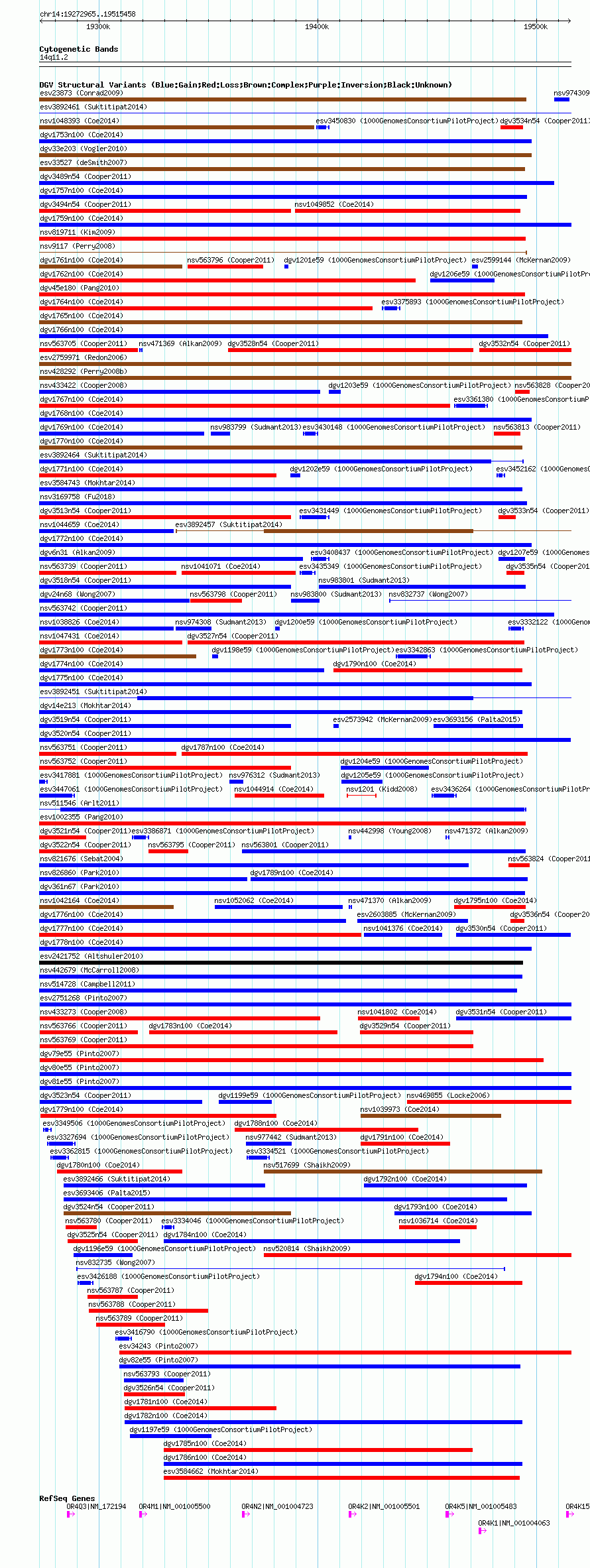 Variant DetailsVariant: nsv563773| Internal ID | 16351182 | | Landmark | | | Location Information | | | Cytoband | 14q11.2 | | Allele length | | Assembly | Allele length | | hg38 | 242494 | | hg19 | 242494 | | hg18 | 242494 |
