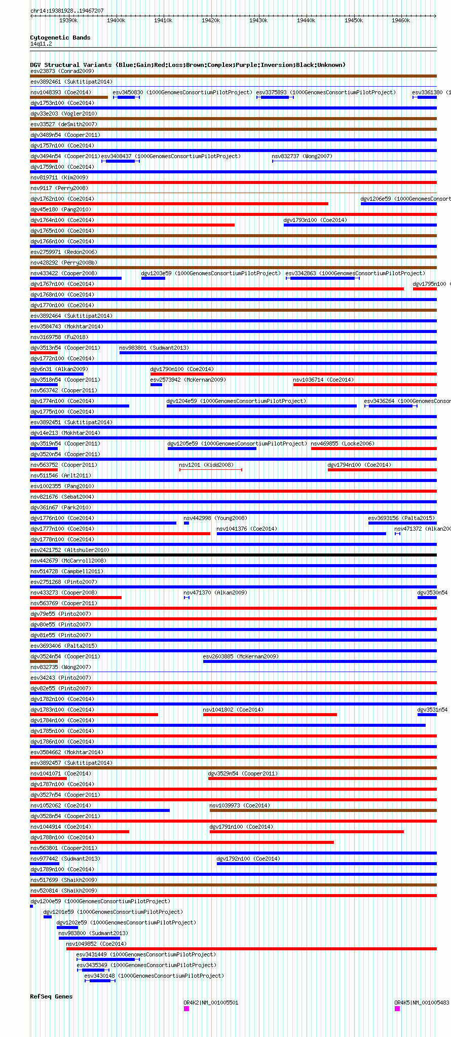 Variant DetailsVariant: nsv563804| Internal ID | 16351213 | | Landmark | | | Location Information | | | Cytoband | 14q11.2 | | Allele length | | Assembly | Allele length | | hg38 | 85280 | | hg19 | 85280 | | hg18 | 85280 |