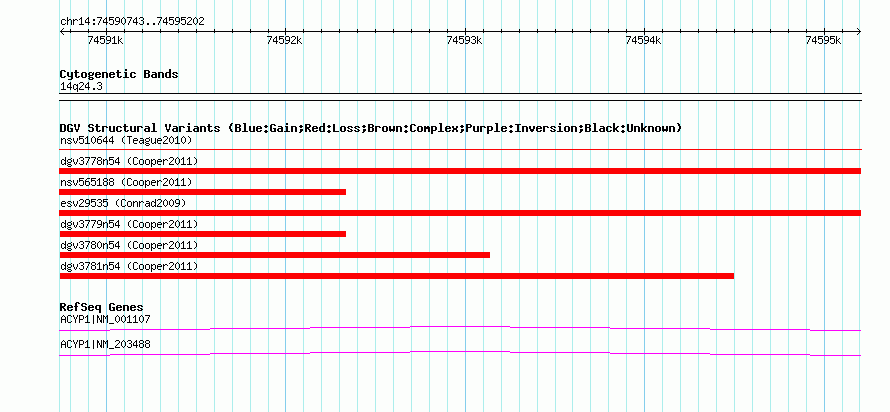 Variant DetailsVariant: nsv565198| Internal ID | 16352607 | | Landmark | | | Location Information | | | Cytoband | 14q24.3 | | Allele length | | Assembly | Allele length | | hg38 | 4460 | | hg19 | 4460 | | hg18 | 4460 |