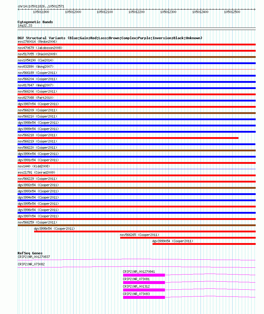 Variant DetailsVariant: nsv566257| Internal ID | 16353666 | | Landmark | | | Location Information | | | Cytoband | 14q32.33 | | Allele length | | Assembly | Allele length | | hg38 | 746 | | hg19 | 746 | | hg18 | 746 |