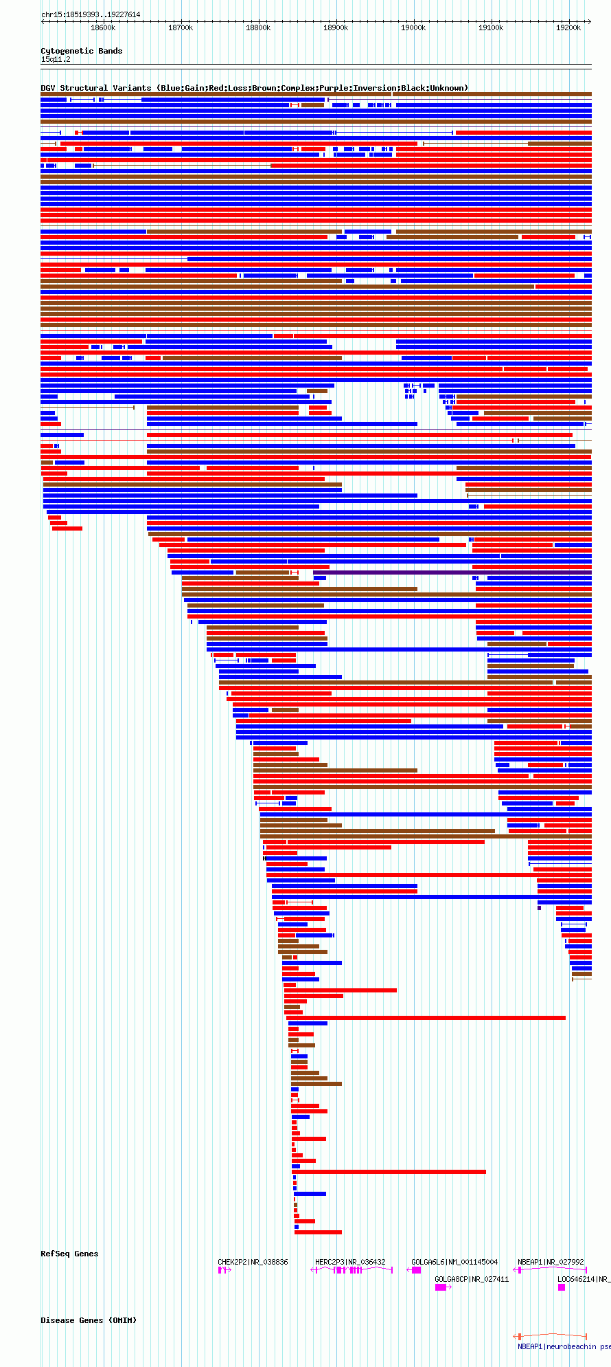 Variant DetailsVariant: nsv567199| Internal ID | 16354608 | | Landmark | | | Location Information | | | Cytoband | 15q11.1 | | Allele length | | Assembly | Allele length | | hg38 | 708129 | | hg19 | 708205 | | hg18 | 708222 |