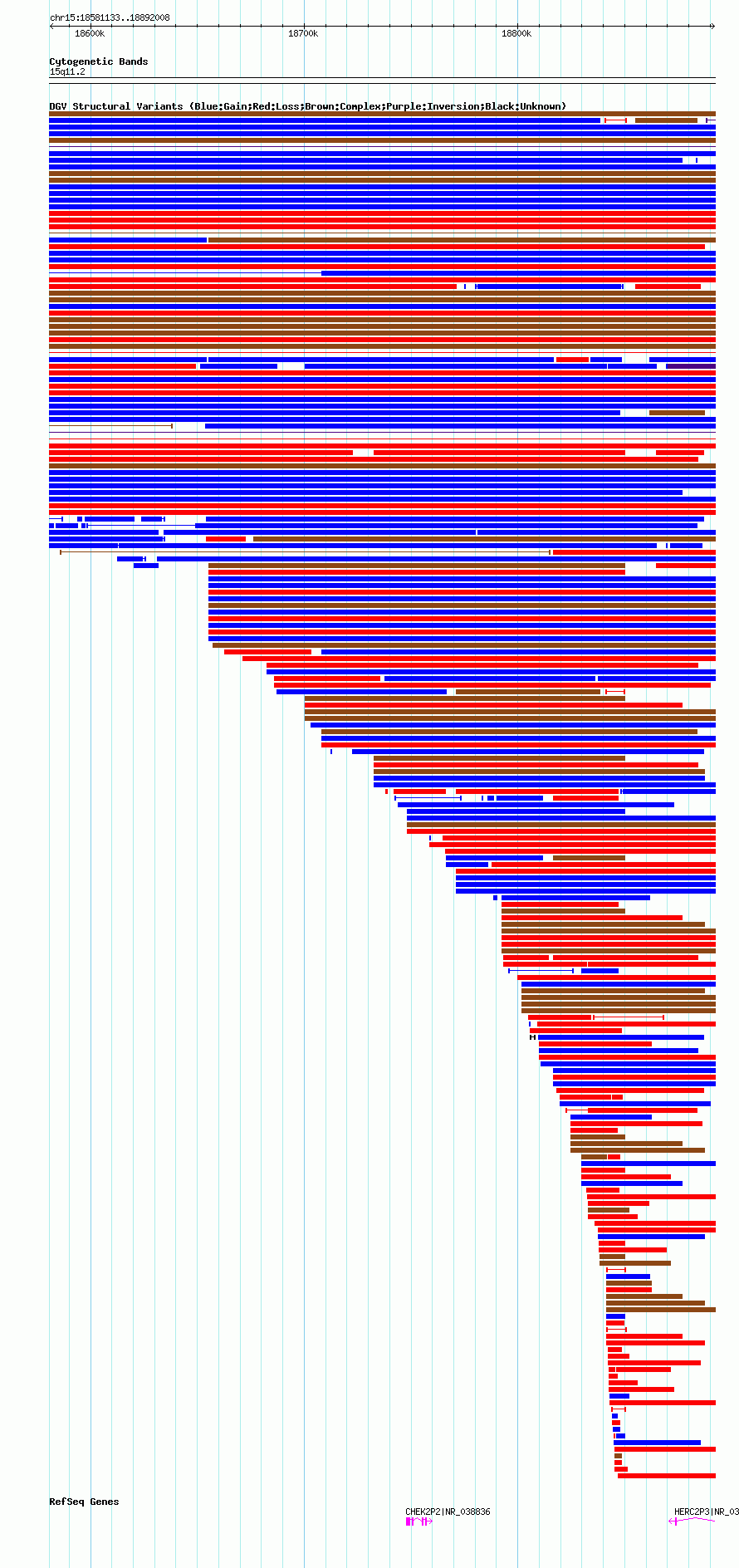 | | Variant Type | CNV gain | | Copy Number | | | Allele State | | | Allele Origin | | | Probe Count | | | Validation Flag | | | Merged Status | M | | Merged Variants | dgv4169n54 | | Supporting Variants | nssv836975 | | Samples | | | Known Genes | CHEK2P2, HERC2P3 | | Method | SNP array | | Analysis | Illumina SNP array copy number analysis | | Platform | Not reported | | Comments | | | Reference | Cooper_et_al_2011 | | Pubmed ID | 21841781 | | Accession Number(s) | nsv567226
