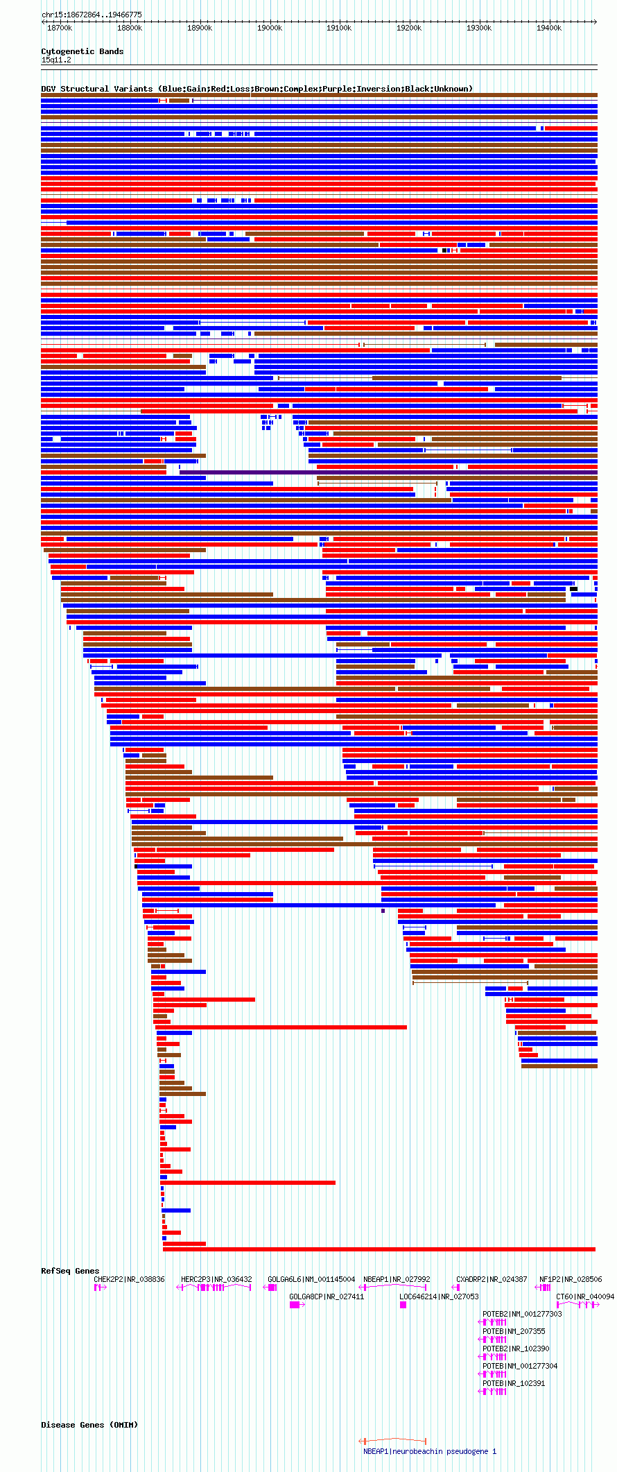 Variant DetailsVariant: nsv567274| Internal ID | 16354683 | | Landmark | | | Location Information | | | Cytoband | 15q11.1 | | Allele length | | Assembly | Allele length | | hg38 | 789191 | | hg19 | 789267 | | hg18 | 793912 |