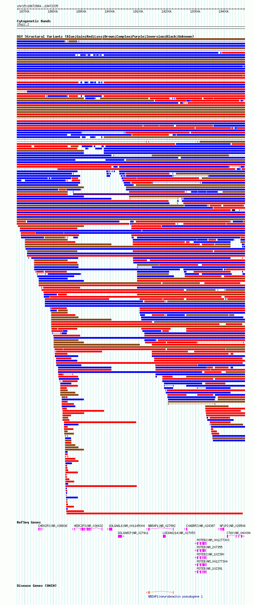 Variant DetailsVariant: nsv567275| Internal ID | 16354684 | | Landmark | | | Location Information | | | Cytoband | 15q11.1 | | Allele length | | Assembly | Allele length | | hg38 | 794751 | | hg19 | 794827 | | hg18 | 799472 |