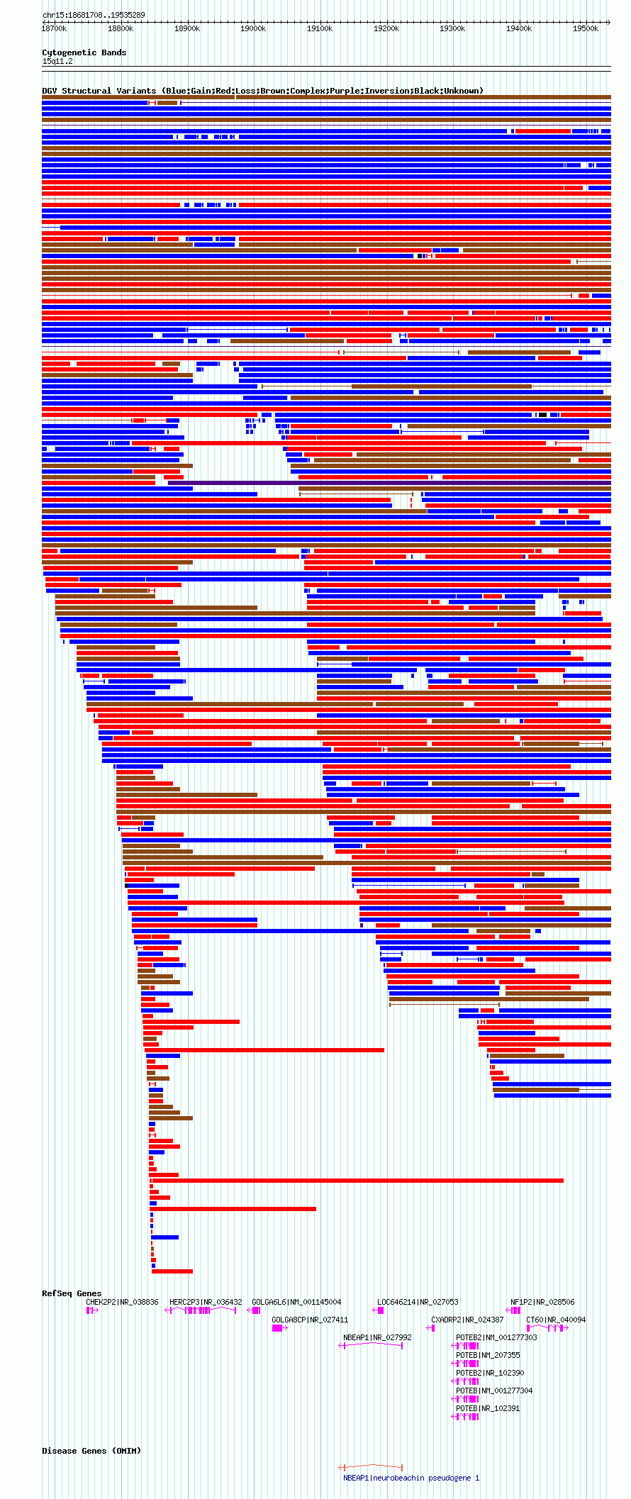 Variant DetailsVariant: nsv567282| Internal ID | 16354691 | | Landmark | | | Location Information | | | Cytoband | 15q11.1 | | Allele length | | Assembly | Allele length | | hg38 | 848861 | | hg19 | 848937 | | hg18 | 853582 |
