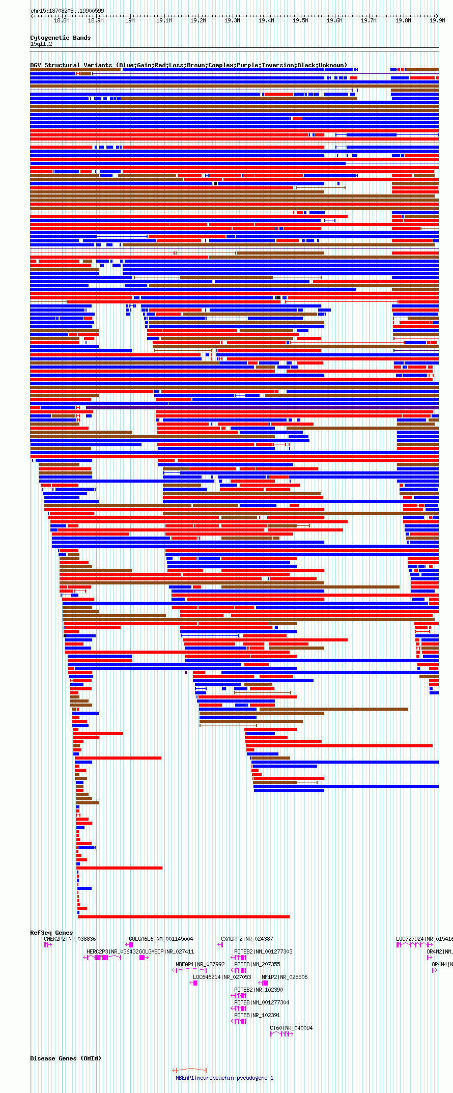 Variant DetailsVariant: nsv567310| Internal ID | 16354719 | | Landmark | | | Location Information | | | Cytoband | 15q11.1 | | Allele length | | Assembly | Allele length | | hg38 | 1868344 | | hg19 | 1951042 | | hg18 | 1192392 |