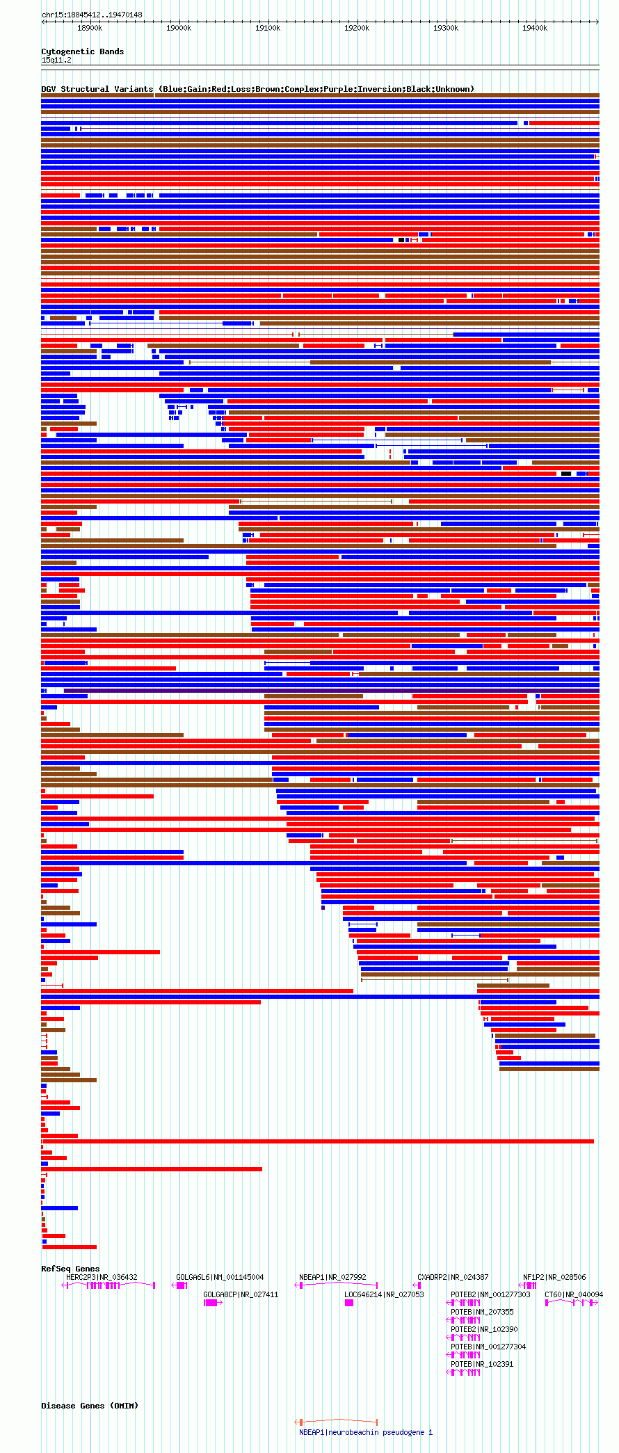 Variant DetailsVariant: nsv567429| Internal ID | 16354838 | | Landmark | | | Location Information | | | Cytoband | 15q11.1 | | Allele length | | Assembly | Allele length | | hg38 | 620016 | | hg19 | 620092 | | hg18 | 624737 |