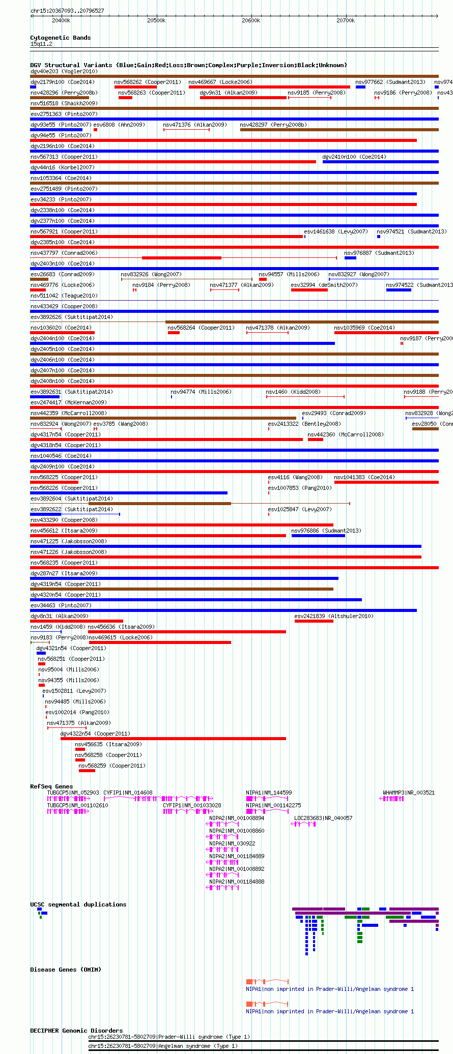 Variant DetailsVariant: nsv568248| Internal ID | 16008971 | | Landmark | | | Location Information | | | Cytoband | 15q11.2 | | Allele length | | Assembly | Allele length | | hg38 | 429330 | | hg19 | 429358 | | hg18 | 429435 |