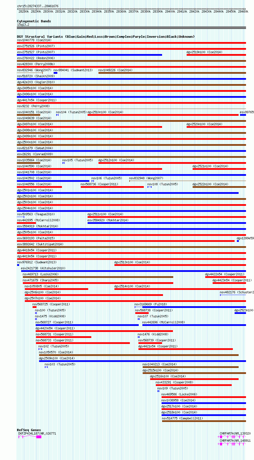 Variant DetailsVariant: nsv568721| Internal ID | 16356130 | | Landmark | | | Location Information | | | Cytoband | 15q13.2 | | Allele length | | Assembly | Allele length | | hg38 | 187340 | | hg19 | 187340 | | hg18 | 187340 |