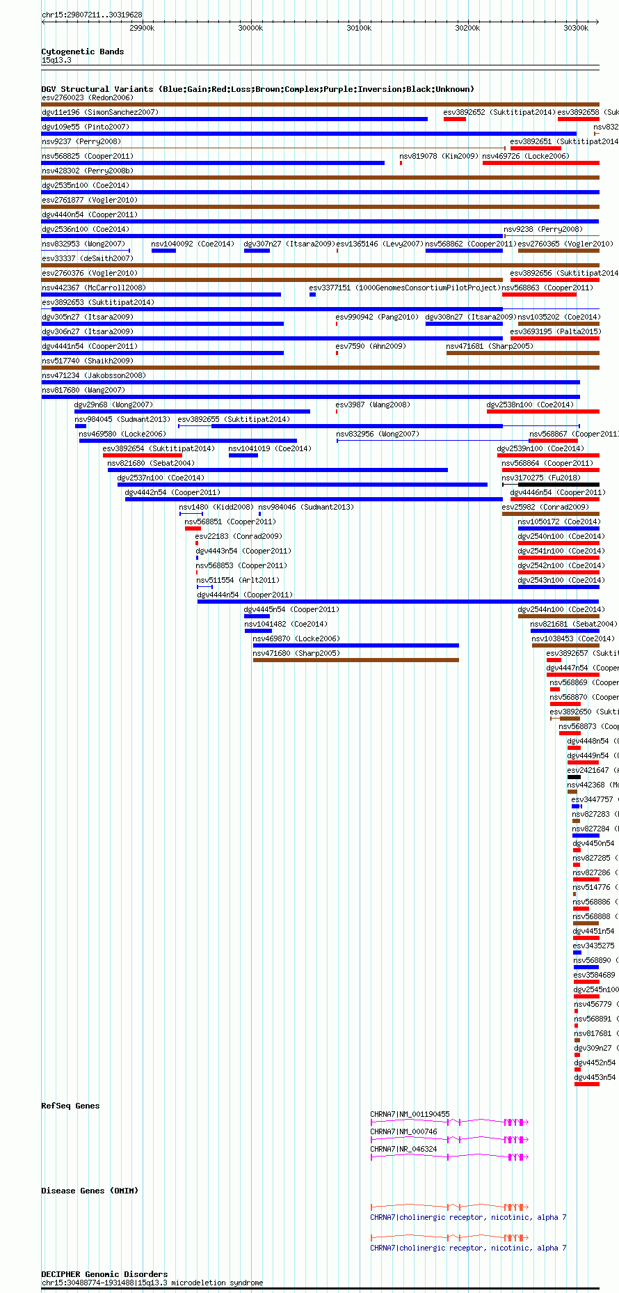 Variant DetailsVariant: nsv568837| Internal ID | 16356246 | | Landmark | | | Location Information | | | Cytoband | 15q13.3 | | Allele length | | Assembly | Allele length | | hg38 | 512420 | | hg19 | 512418 | | hg18 | 512418 |