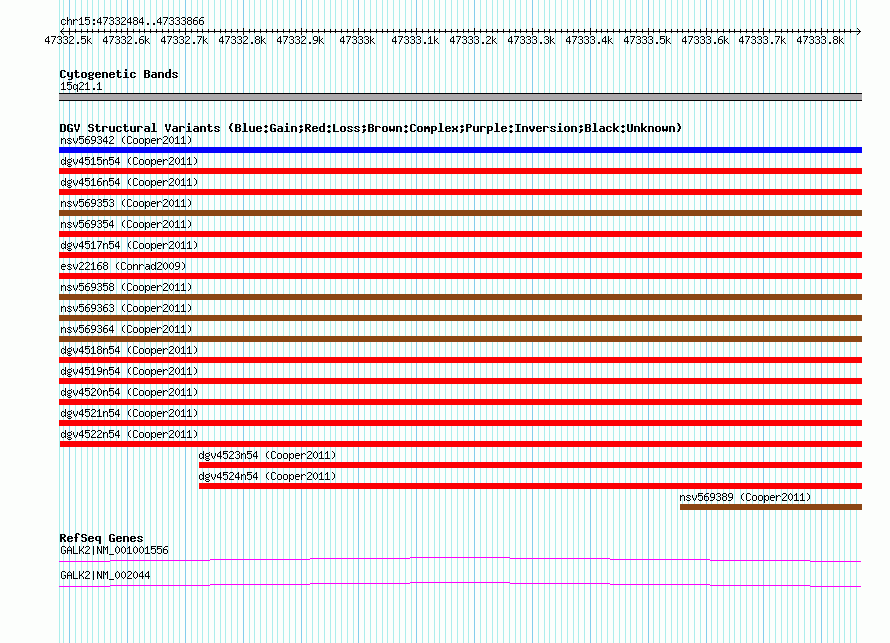 | | Variant Type | CNV loss | | Copy Number | | | Allele State | | | Allele Origin | | | Probe Count | | | Validation Flag | | | Merged Status | M | | Merged Variants | dgv4518n54 | | Supporting Variants | nssv842838, nssv842840, nssv842836, nssv842837, nssv842839 | | Samples | | | Known Genes | GALK2 | | Method | SNP array | | Analysis | Illumina SNP array copy number analysis | | Platform | Not reported | | Comments | | | Reference | Cooper_et_al_2011 | | Pubmed ID | 21841781 | | Accession Number(s) | nsv569366