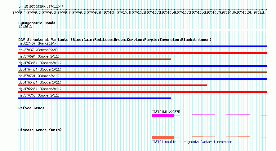 | | Variant Type | CNV loss | | Copy Number | | | Allele State | | | Allele Origin | | | Probe Count | | | Validation Flag | | | Merged Status | M | | Merged Variants | dgv4766n54 | | Supporting Variants | nssv849612, nssv849611 | | Samples | | | Known Genes | IGF1R | | Method | SNP array | | Analysis | Illumina SNP array copy number analysis | | Platform | Not reported | | Comments | | | Reference | Cooper_et_al_2011 | | Pubmed ID | 21841781 | | Accession Number(s) | nsv570708