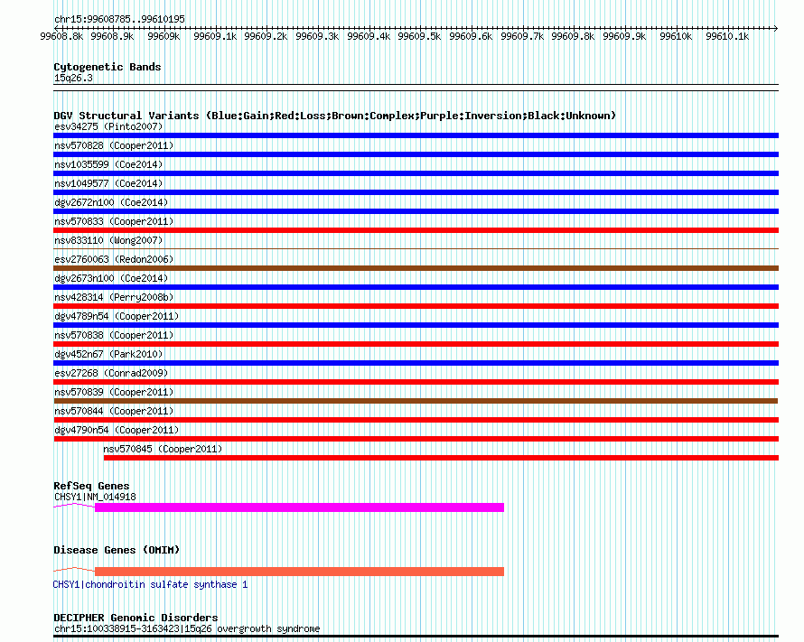 | | Variant Type | CNV gain+loss | | Copy Number | | | Allele State | | | Allele Origin | | | Probe Count | | | Validation Flag | | | Merged Status | M | | Merged Variants | | | Supporting Variants | nssv851060, nssv851057, nssv851044, nssv851052, nssv851043, nssv851050, nssv851049, nssv851054, nssv851046, nssv851063, nssv851038, nssv851048, nssv851037, nssv851059, nssv851047, nssv851033, nssv851061, nssv851040, nssv851041, nssv851039, nssv851056, nssv851053, nssv851045, nssv851062, nssv851034, nssv851032, nssv851051, nssv851035, nssv851036, nssv851058, nssv851055, nssv851042 | | Samples | | | Known Genes | CHSY1 | | Method | SNP array | | Analysis | Illumina SNP array copy number analysis | | Platform | Not reported | | Comments | | | Reference | Cooper_et_al_2011 | | Pubmed ID | 21841781 | | Accession Number(s) | nsv570839